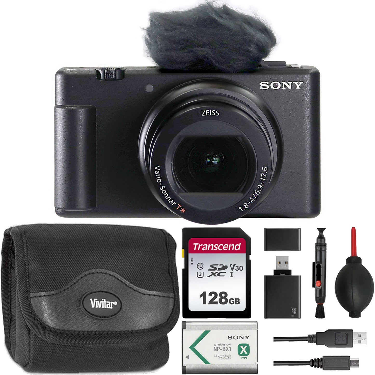 SONY ZV-1 II DIGITAL CAMERA (BLACK) + 128GB SDXC MEMORY CARD + CARD READER + LENS PEN + DUST BLOWER + SMALL CAMCORDER CASE