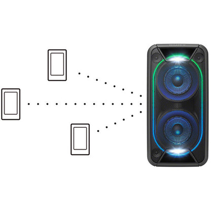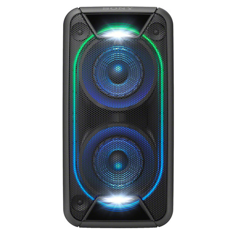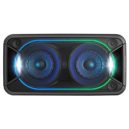 Enjoy responsive ambient lighting with your music with the Sony GTK-XB90 Bluetooth Speaker. Its built-in LED lighting will adjust with the beat of your music while its three 2.36" tweeters and two 7.09" woofers play your music of choice via the USB port, stereo RCA input, or Bluetooth; NFC is also onboard for quick Bluetooth connectivity. With its built-in carry handle and up to 16-hour battery, you can take the party nearly anywhere.