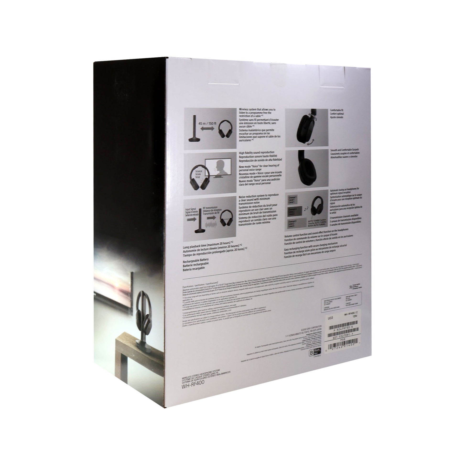 Sony RF400 Wireless Home Theater Headphones for Watching TV (WHRF400), Black Stay immersed in the action with wireless, Noise-Reducing home theater headphones. High quality sound from large drivers and a range of 150 feet for optimal performance. Enjoy crystal-clear voices in your favorite shows and movies with voice mode and binge-watch uninterrupted with 20 hours of battery life in a comfortable, adjustable DESIGN. NOTE: ? This product was designed for older televisions with Stereo Audio connectors or a headphone jack: newer televisions with HDMI or Digital Optical should instead use headphone model WH-L600.