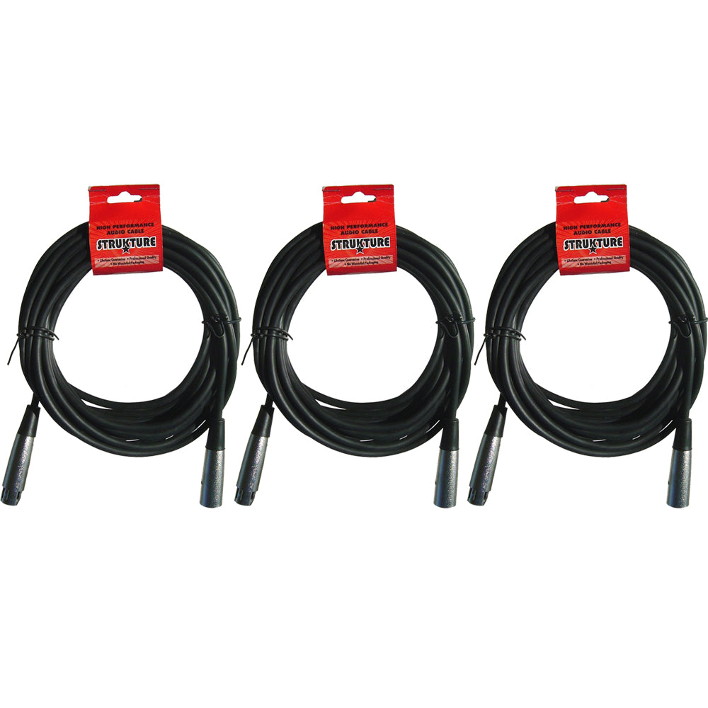 3x Sturkture XLR Microphone Cable Male to Female 6Ft Fully Balanced Premium Microphone Cable