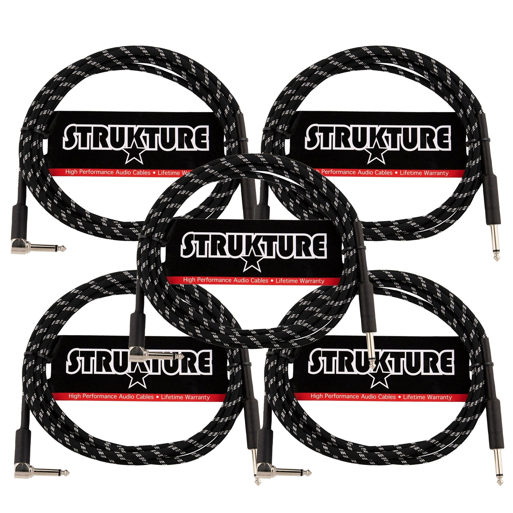 - 5x Strukture Instrument Cable 10ft. Right Angle (Black/Silver)
