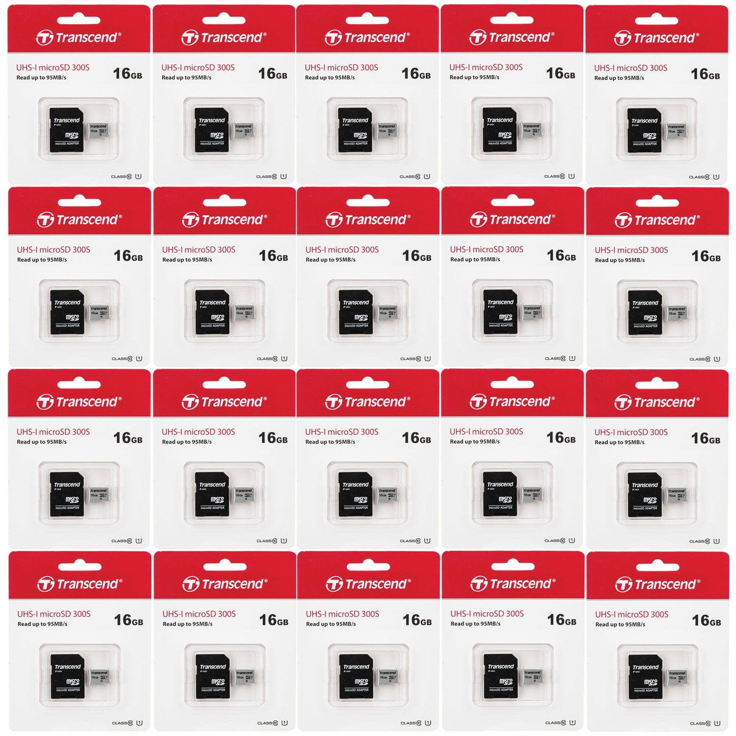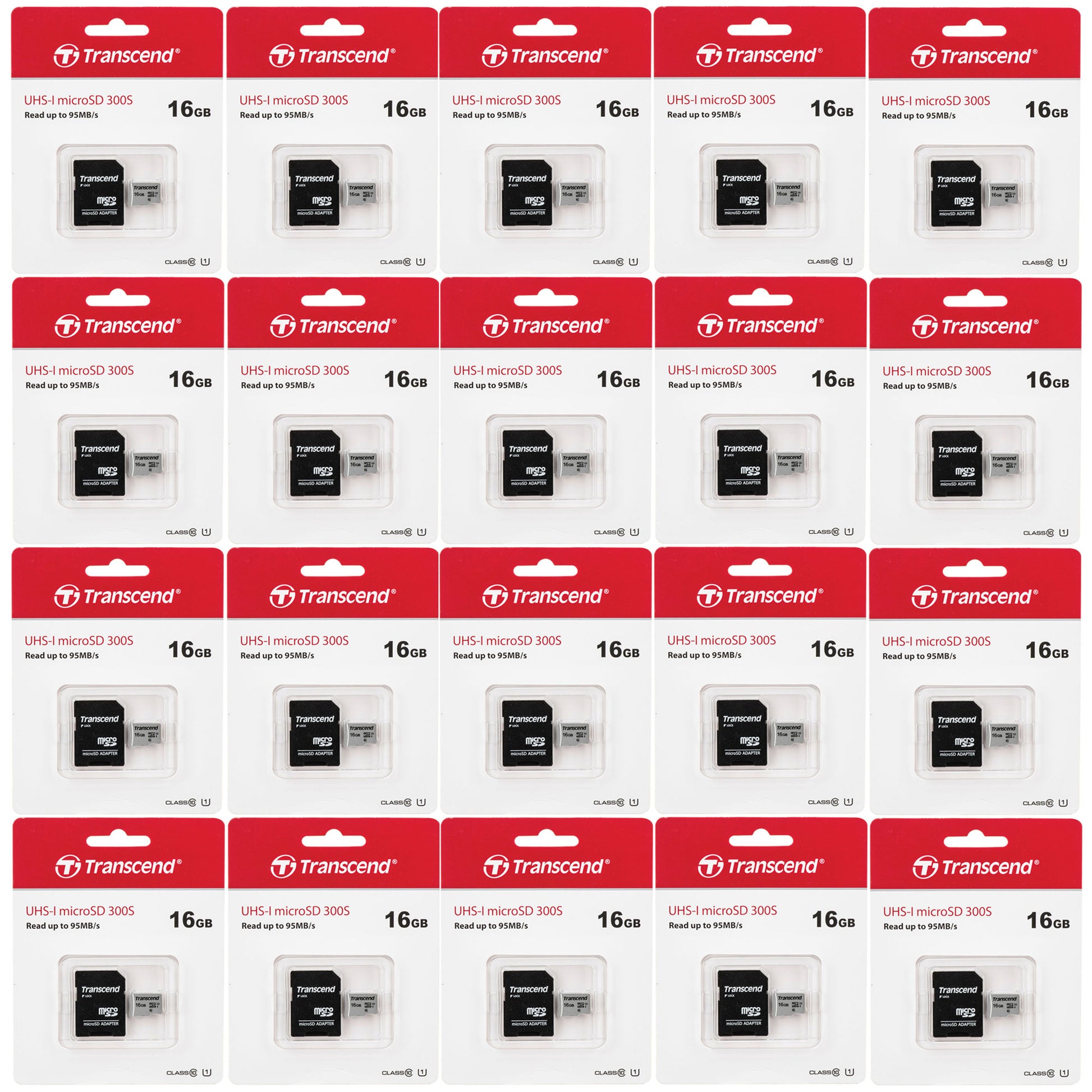 - 20x Transcend 16GB MicroSD 300s 95MB/s Class 10 Micro SDHC Memory Card with SD Adapter