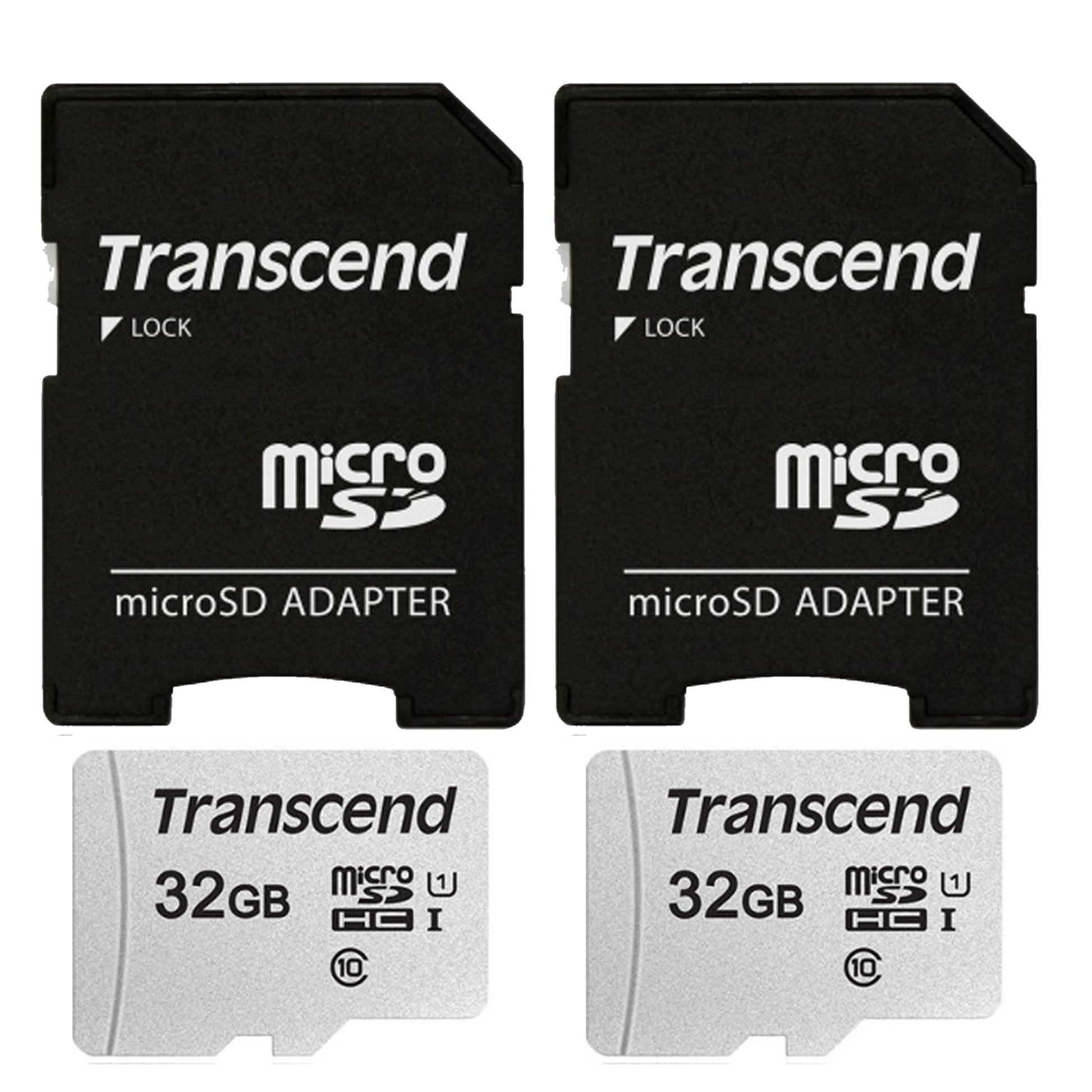 2x Transcend 32GB MicroSD 300s 100MB/s Class 10 Micro SDHC Memory Card with SD Adapter