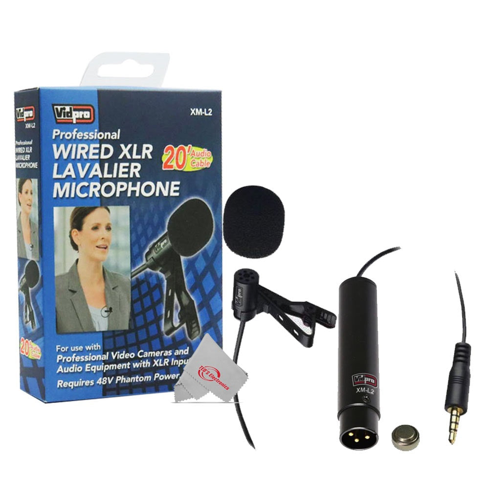 Record crystal-clear sound with the Vidpro Lavalier Condenser Microphone.This mic is great for use with cameras/camcorders that utilize a XLR Input, and it conveniently attaches to the subject via the included lapel clip.The in-line controller/power module along the 10-foot cable has an on/offswitch, and the foam windscreen helps to eliminate wind noise.