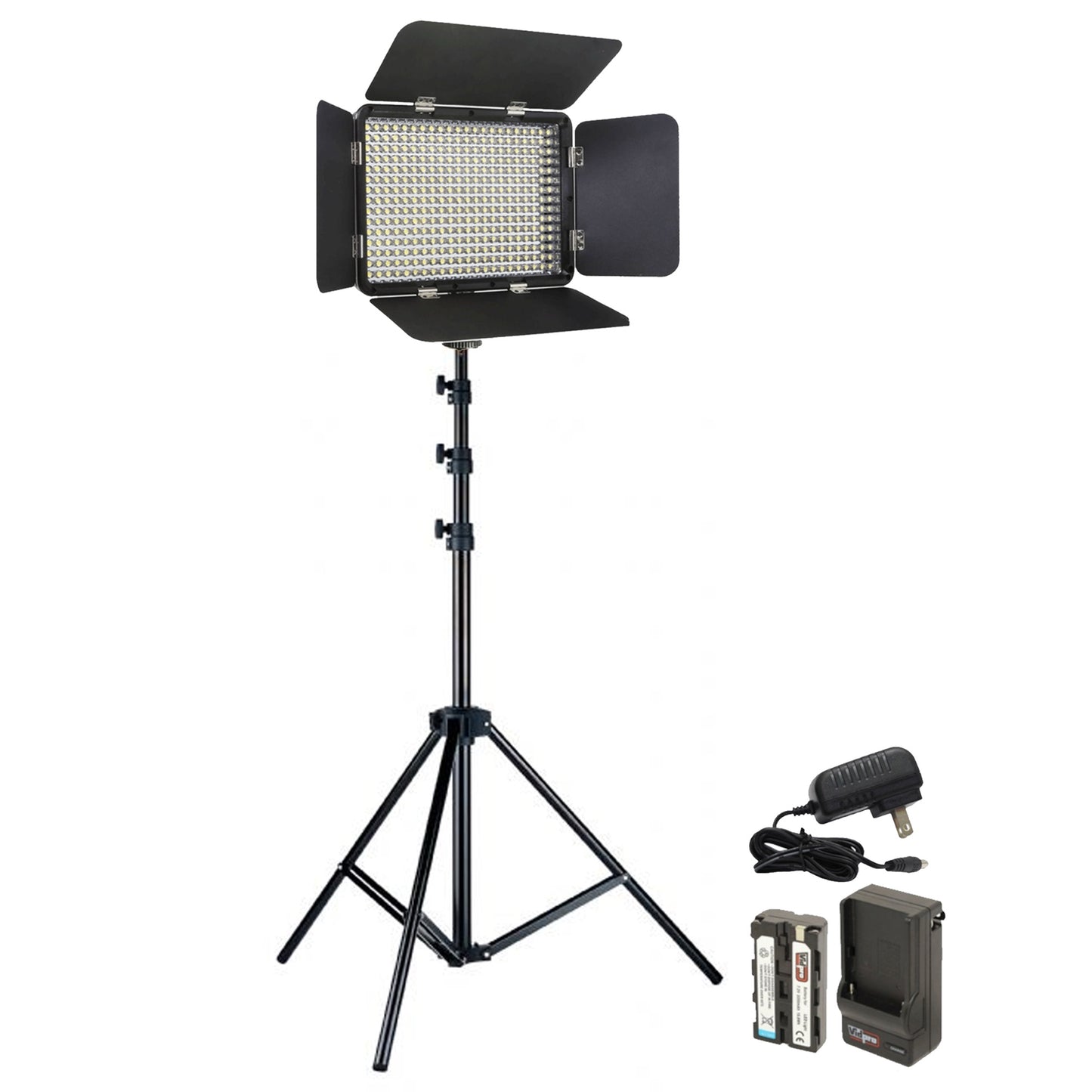 - Vidpro LED-330X Varicolor Studio Video Lighting Kit with Built-in Barn Doors & Diffuser Includes Li-ion Battery & Charger, AC Adapter, Adjustable Shoe Mount