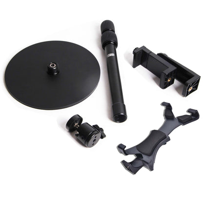- Package list: 1 x Heavy Base; 1 x Telescopic stand; 1 x Panoramic Ball Head; 1 x Phone clip