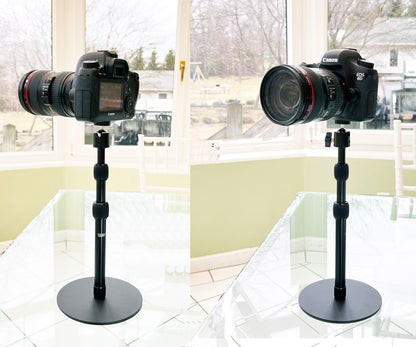 - This tabletop stand is also great for mounting ring lights, microphones and other audio equipment changing your desk into a mini studio, when needed.