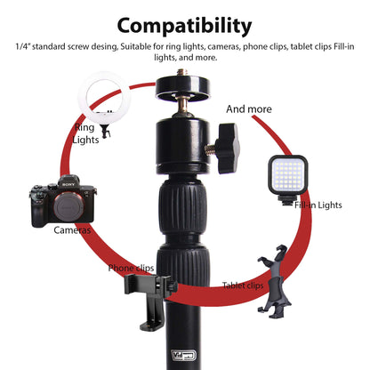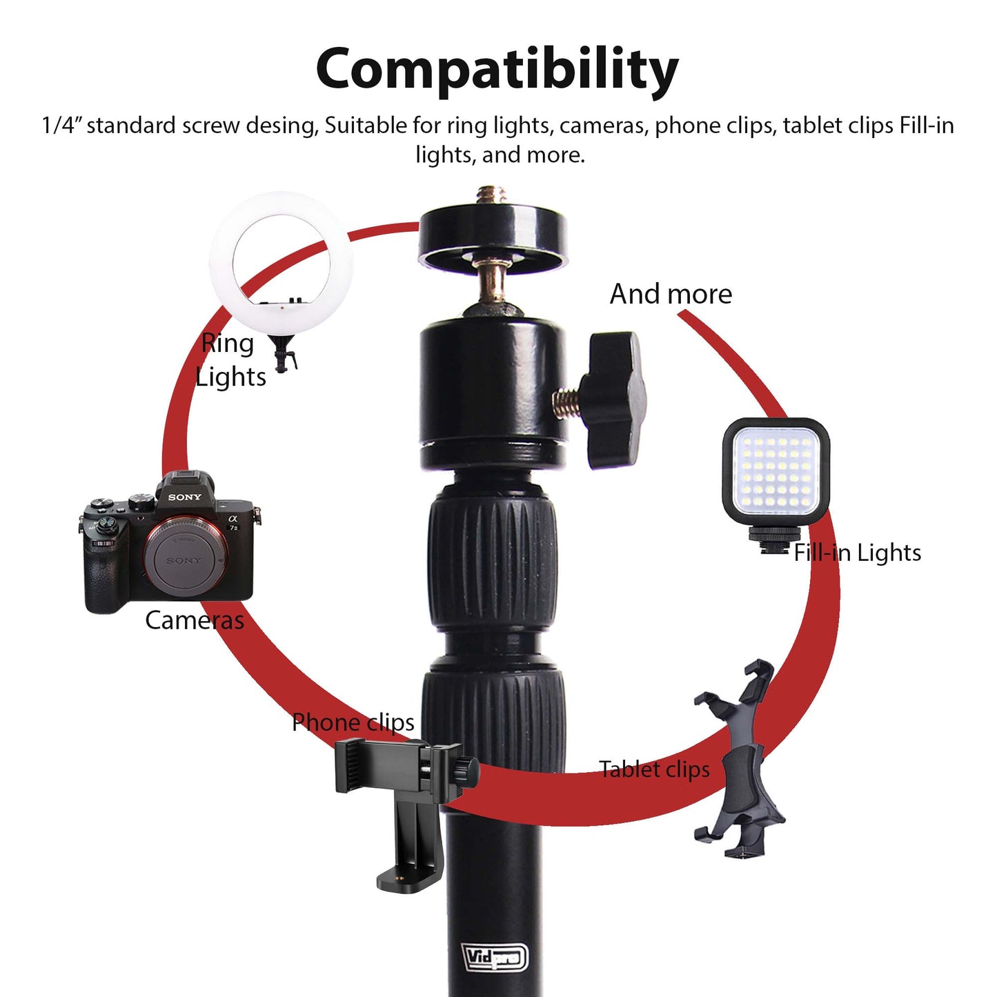 Vidpro ST18 Camera Smartphone Webcam Desktop Stand - 1/4" Screw Mount, 360° Rotatable Ball Head, 8 - 18 Inch Height Adjustable Table Stand for DSLR, Cameras, Phone, Mevo, Webcam, Lights etc.