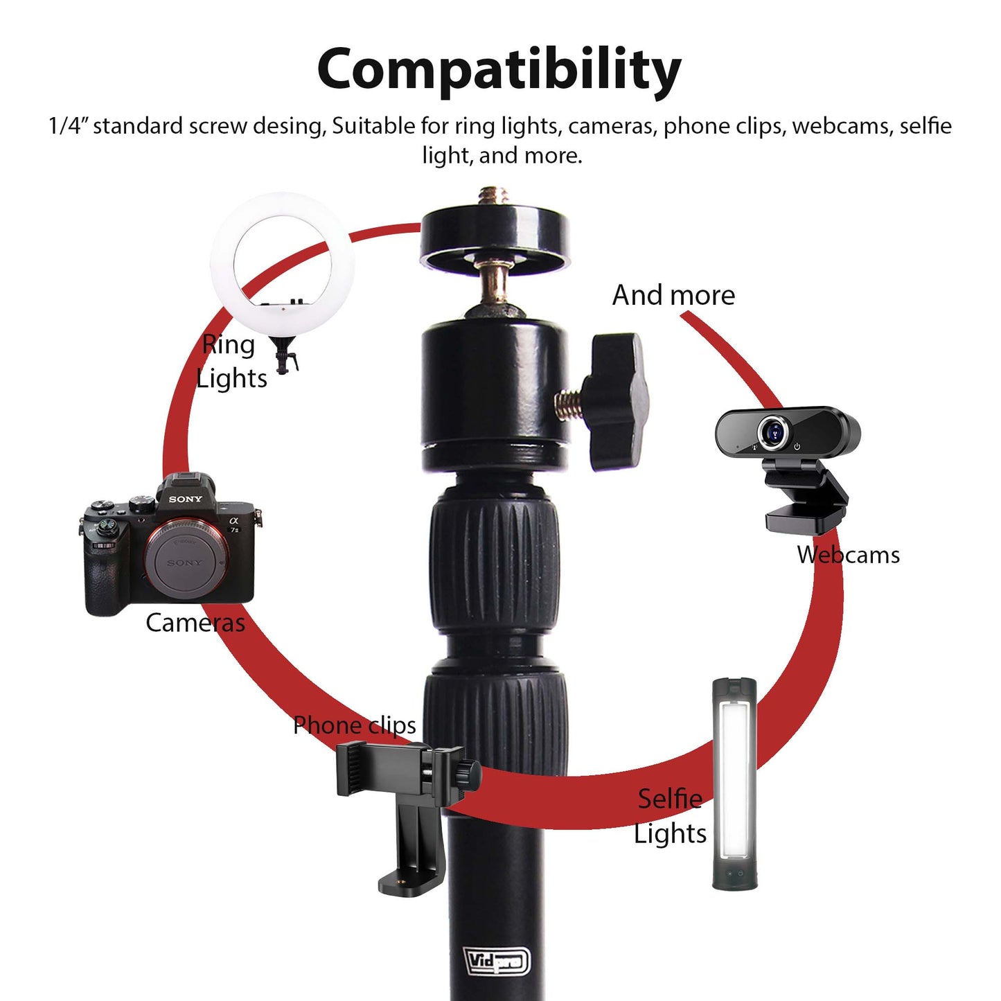 Vidpro ST18 Camera Smartphone Webcam Desktop Stand - 1/4" Screw Mount, 360° Rotatable Ball Head, 8 - 18 Inch Height Adjustable Table Stand for DSLR, Cameras, Phone, Mevo, Webcam, Lights etc.