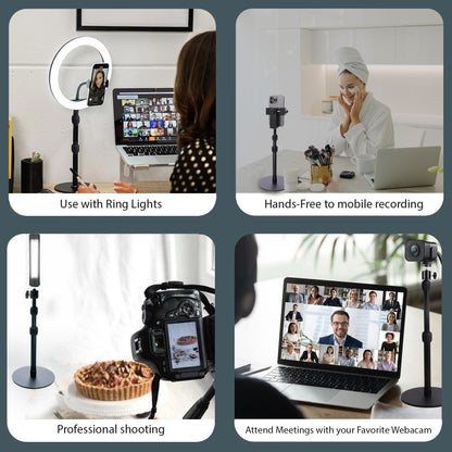 - This tabletop stand is also great for mounting ring lights, microphones and other audio equipment changing your desk into a mini studio, when needed.