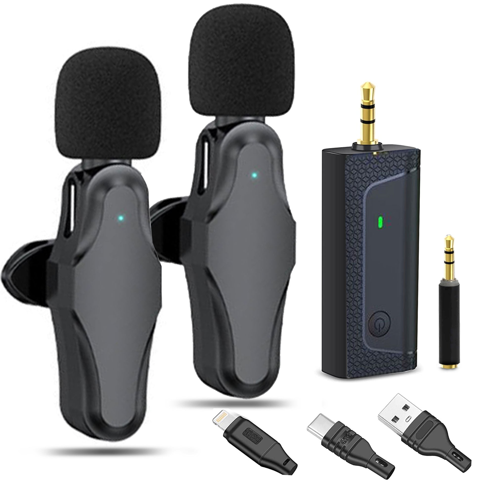 The Dual Wireless Lav Microphone Set has a Omnidirectional wireless microphone 360° record crystal-clear audio to your devices. Advanced chip set can eliminate the background noise effectively and pick up the target sound intelligently, provides your video with a more excellent voice. Perfect for filmmakers, vloggers, youtubers, mobile journalists, content creators.