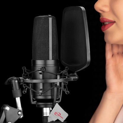 - Includes a suspension shock mount, pop filter and a 10' long professional quality XLR cable