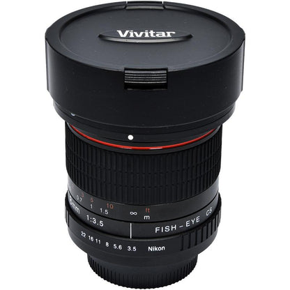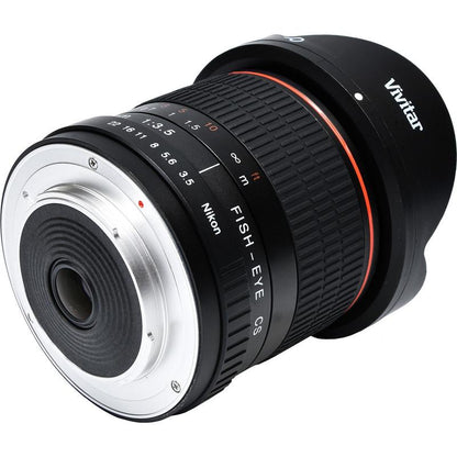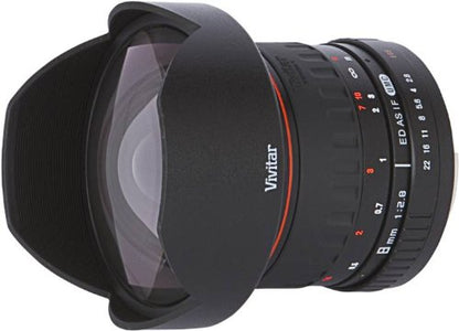 The Vivitar 8mm f/3.5 Fisheye Lens is created for APS-C image sensors. A rounded image is made when used with a full-frame camera. By offering a 180-degree angle of view, this fisheye lens can be used to create amazing image expressions that cannot be seen with the human eye, such as exaggerated perspective and distortion. Removable petal-type hood and drawstring pouch included. Additional features: 12 in. (30.5cm) minimum shooting distance, hybrid aspherical lens and multi-layer coating.