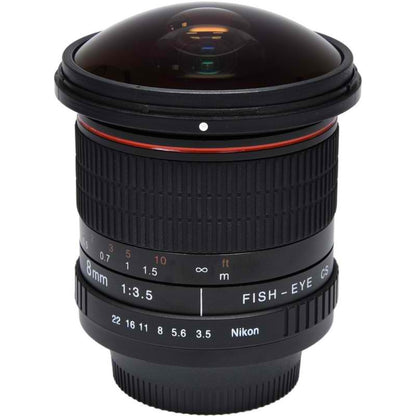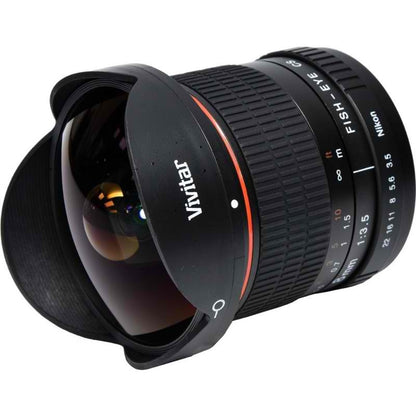 The Vivitar 8mm f/3.5 Fisheye Lens is created for APS-C image sensors. A rounded image is made when used with a full-frame camera. By offering a 180-degree angle of view, this fisheye lens can be used to create amazing image expressions that cannot be seen with the human eye, such as exaggerated perspective and distortion. Removable petal-type hood and drawstring pouch included. Additional features: 12 in. (30.5cm) minimum shooting distance, hybrid aspherical lens and multi-layer coating.