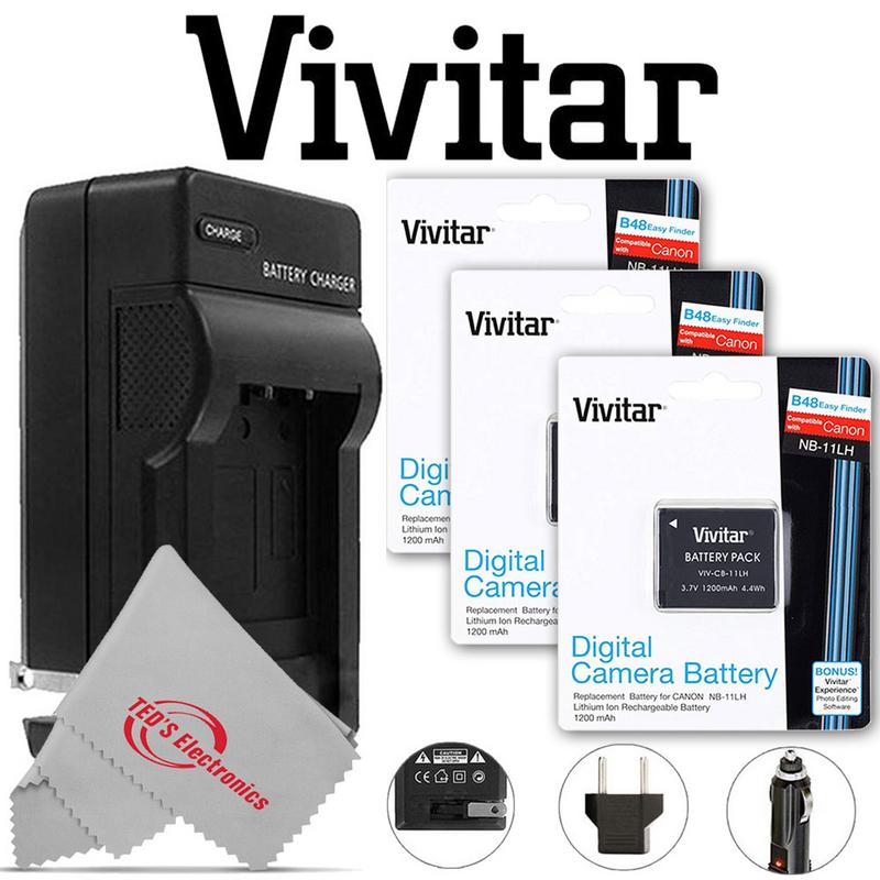 Three VIVITAR VIV-CB-11LH Li-On Battery and Battery Charger for Canon NB-11L/NB-11LH (Canon Powershot SX410 IS, SX400 IS, ELPH 170 IS, 340 HS 320)
