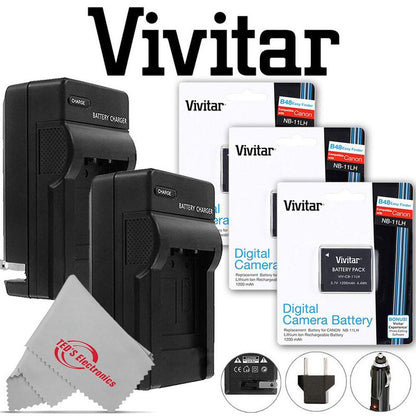 Three VIVITAR VIV-CB-11LH Battery and Two Battery Charger for Canon NB-11L/NB-11LH (Canon Powershot SX410 IS, SX400 IS, ELPH 170 IS, 340 HS 320)