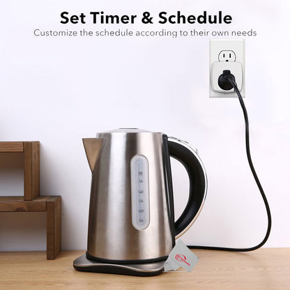 The mini smart plug can work with Amazon Alexa and Google Assistant, you can manage your home appliance through voice control. You don’t have to walk to turn on/off the appliances when you’re busying or tired.