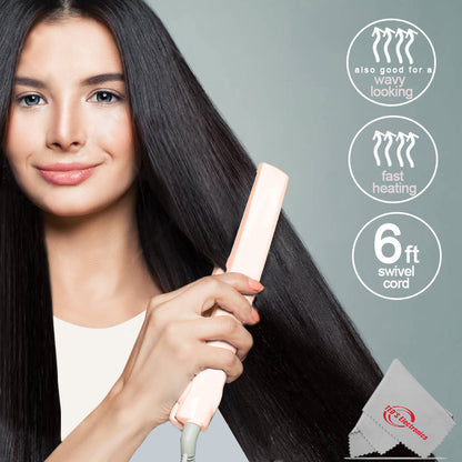 Smooth and straighten hair easily with the Vivitar's Flat Iron! With even heating for superior results, this flat iron helps eliminate frizz while leaving hair shiny. With a 6 ft swivel cord, you can enjoy a tangle-free styling experience.