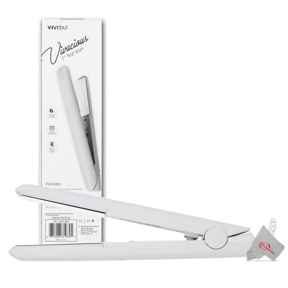 Vivitar PG7230 Ceramic Tourmaline 1 Inch Flat Iron Fast Heating Floating Plates Up to 400° with 6ft Swivel Cord White