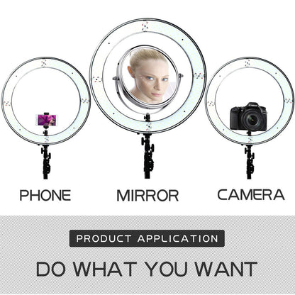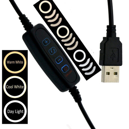 Go Live with the Vlogger Series 10" Streaming Essentials LED Ring Light. With a 10" dimmable LED light ring, 10 levels of brightness and 3 light color modes: warm, soft (white & warm) and white light you will definitely capture your best shot! It's perfect for makeup photography, product photography, fashion photography, video shooting and more! With a flexible tripod legs, usb connection, hot shoe adapter, remote control, ball head and a phone holder!