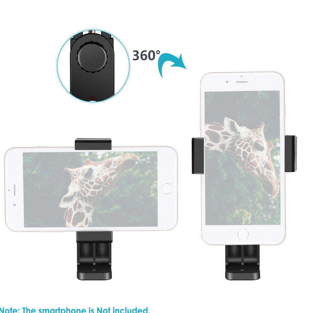 Additionally, the RL18 includes: an aluminum light stand that extends from 29.5" to 61" in height; a flexible extension arm that can be used to articulate the fixture; a shoe-mount ball head for mounting a camera or camcorder; a smartphone holder for mounting nearly any phone to the ball head; a Bluetooth remote that can wirelessly control a Bluetooth-enabled device up to 30 feet away; and a convenient carrying case.