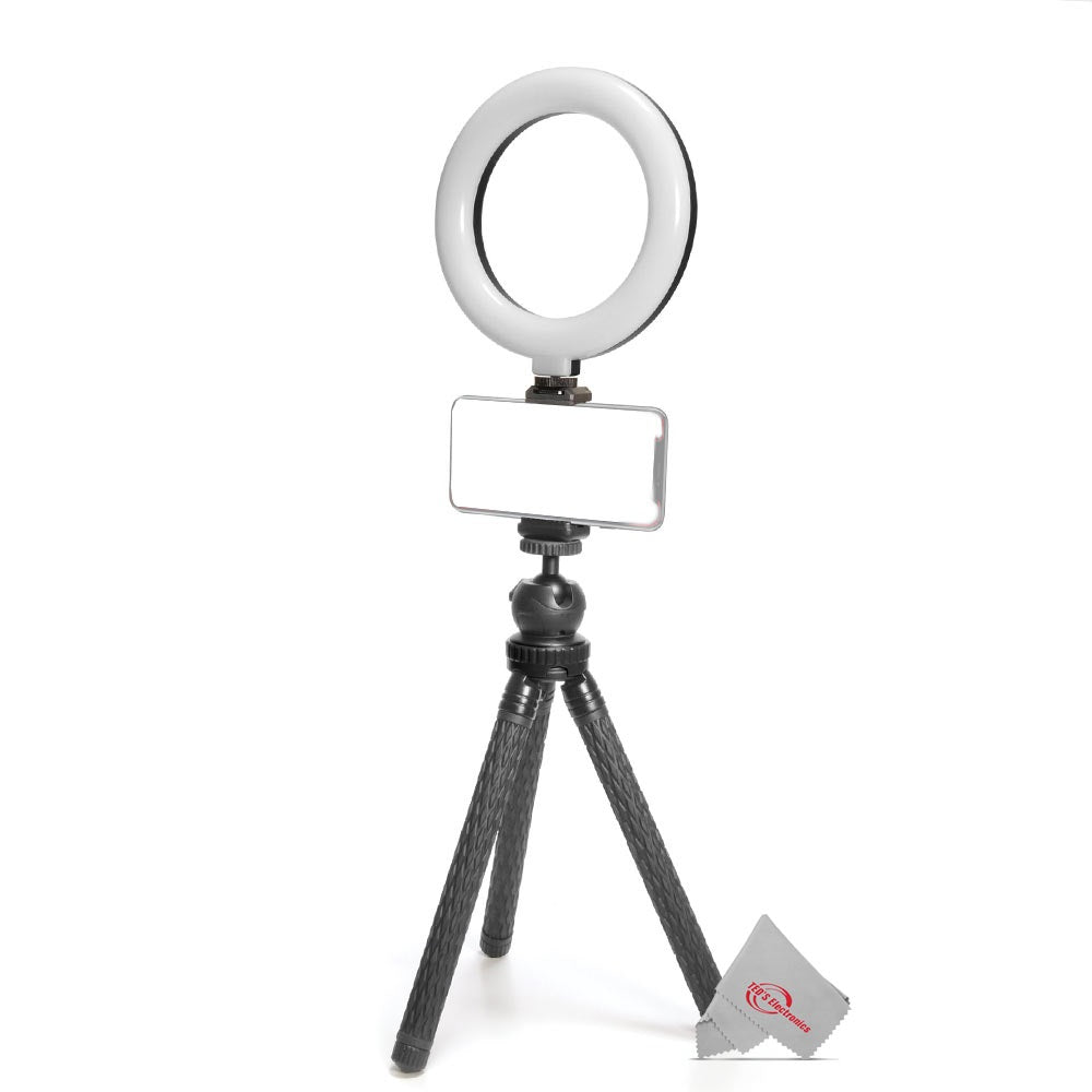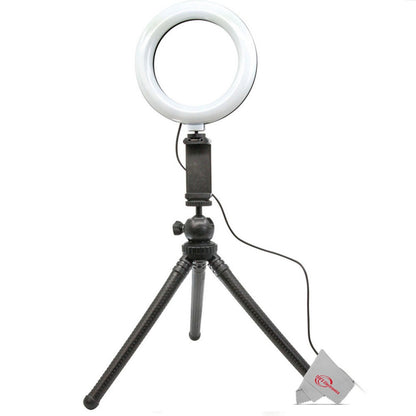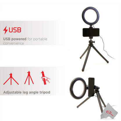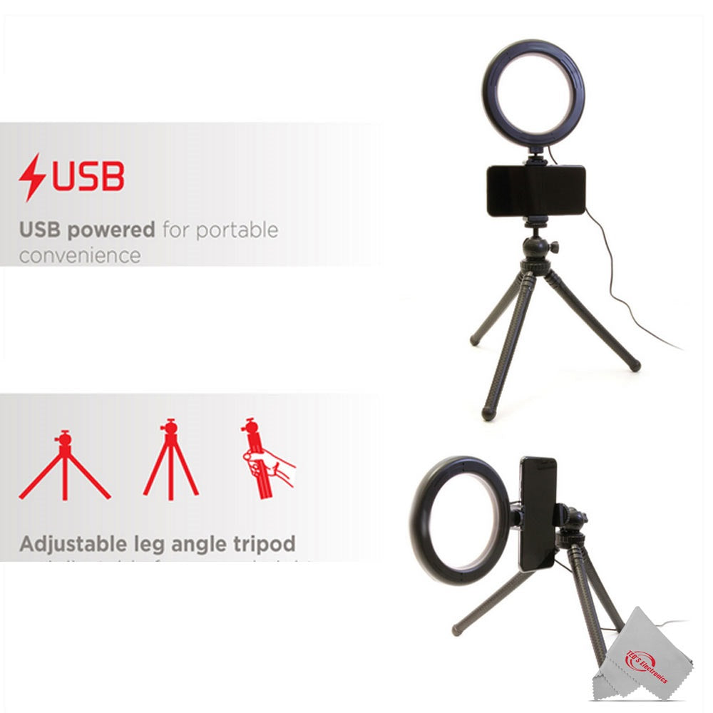 Portable design with 6 inch USB powered ring light for even lighting of your subject with great power. The Portable Vlogging Kit is designed for use with today’s smartphones.This kit also includes a tripod for easy mounting, as well as a ball head and an adjustable smartphone mount. It can also be used as a handheld portable unit, when keeping the legs closed and using them as a handle.