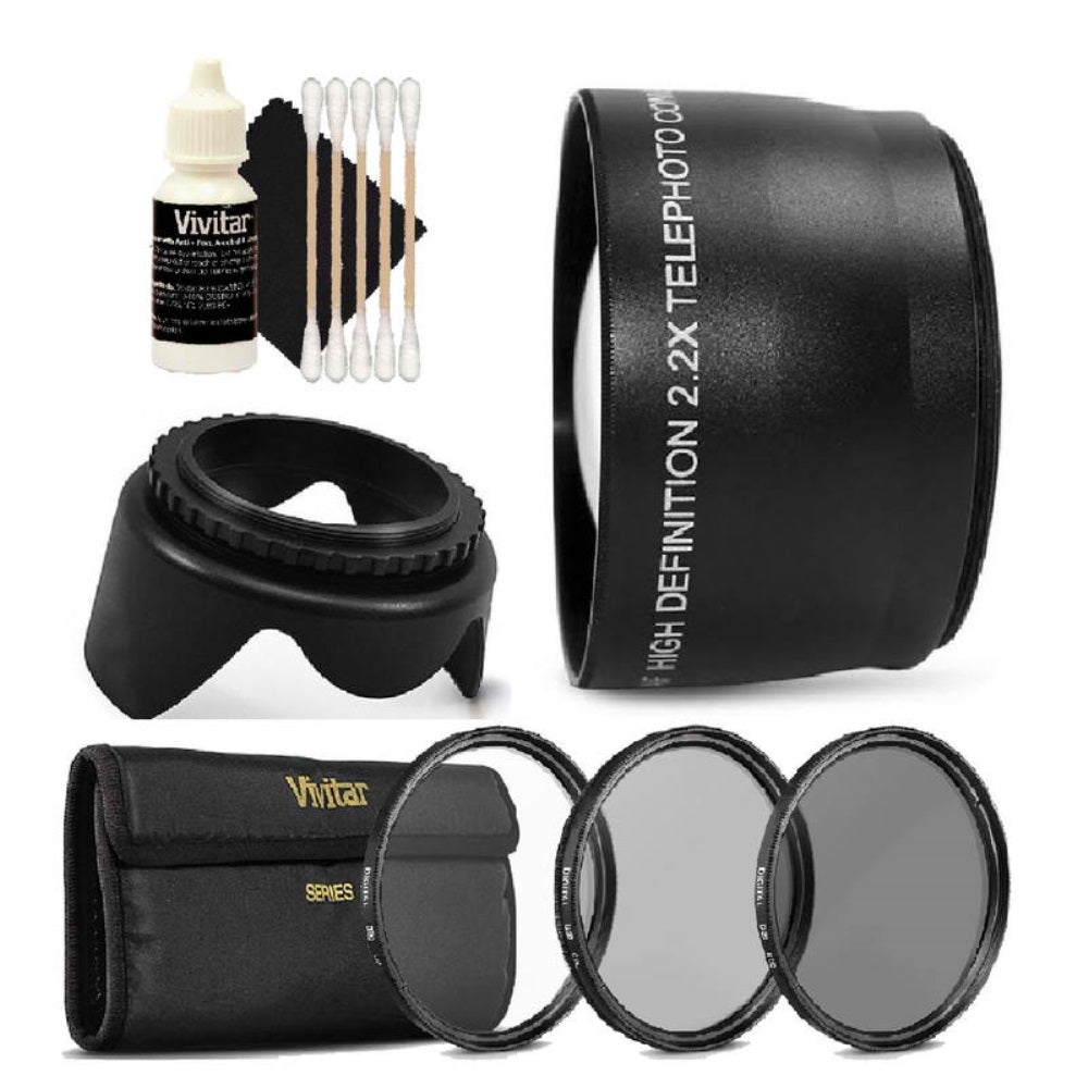 The 58mm 2.2x Telephoto Attachment Lens mounts to the front of lenses featuring a 58mm filter ring diameter, and offers a 2.2x magnification to provide a narrower field of view. Multi-coated glass optics help to maintain the original lens' quality by reducing flare and ghosting, and a steel barrel design ensures durability. Additionally, a carrying case and caps are also included for protecting the lens during storage and travel.