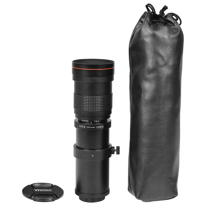 Capture images magnified up to 16x that of a standard 50mm lens with the Vivitar 420-800mm f/8.3 Manual Focus Telephoto Zoom Lens (requires camera-specific T-Mount adapter) mounted to your favorite camera. This entry-level manual focus push/pull zoom lens is manufactured with multi-coated all-glass elements and a screw-in lens hood for superior contrast and resolution, with an aluminum alloy body that is surprisingly lightweight and compact.
