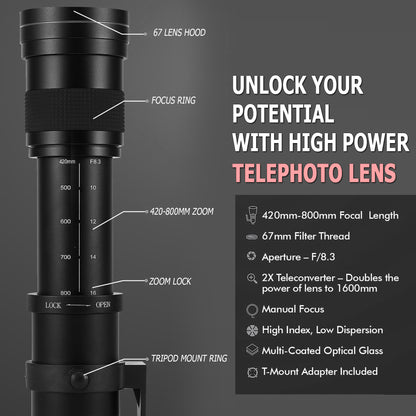 420-1600mm f/8.3 HD Manual Super Telephoto Zoom Lens for Nikon D7500 D5600