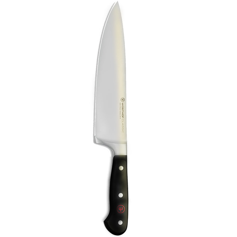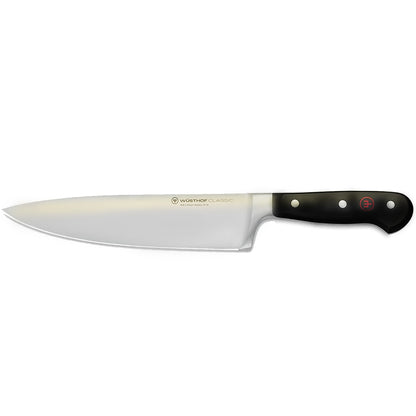Give your kitchen an extra edge with this Wusthof 1040100120 Classic 8" forged cook's knife with POM handle. Polished by hand, this cook's knife is an all-purpose kitchen knife that can be used for chopping, mincing, slicing, and dicing. Its weight balance makes it perfect for cutting thick veggies and meats. Wusthof's best-selling line for generations, the Classic collection features a wide range of premium, forged cutlery with POM handles to meet a kitchen's every need.