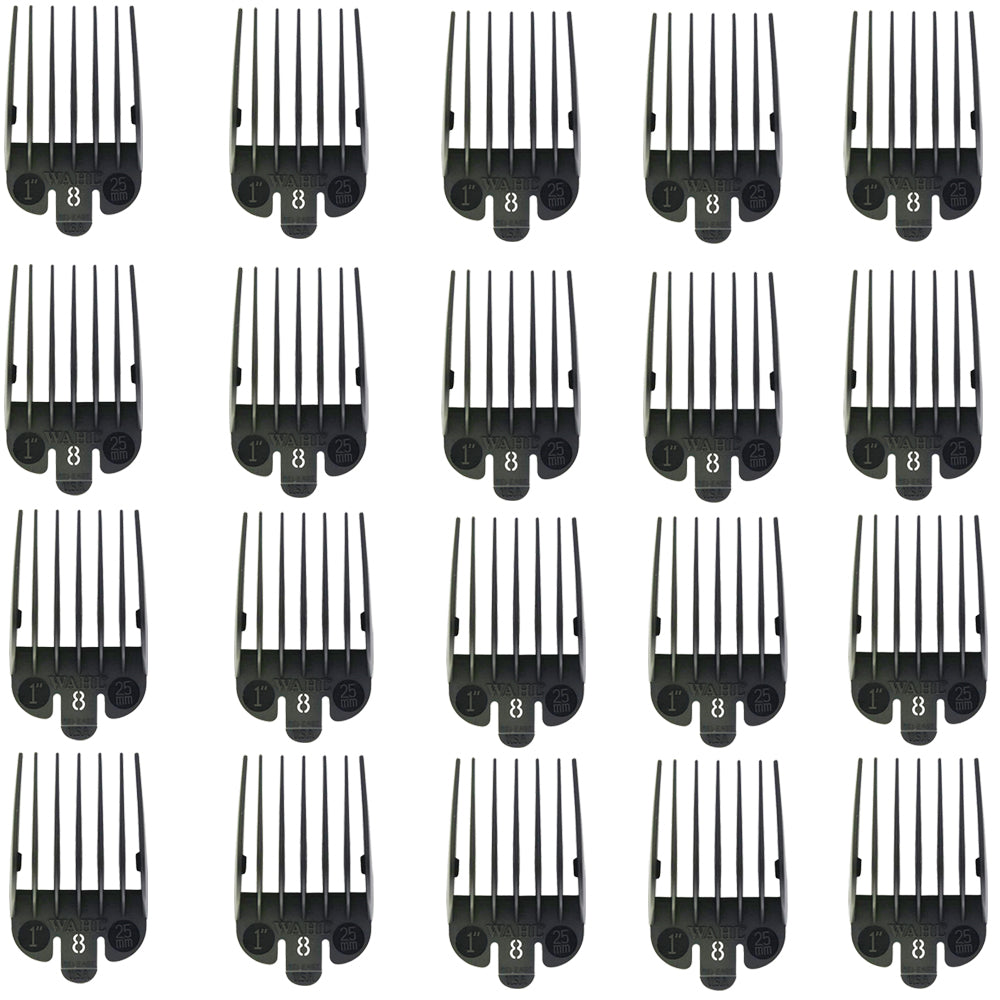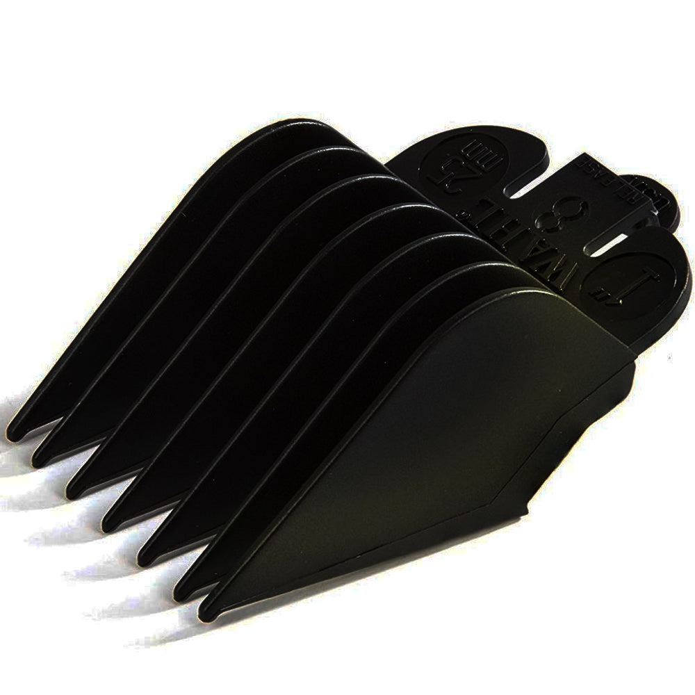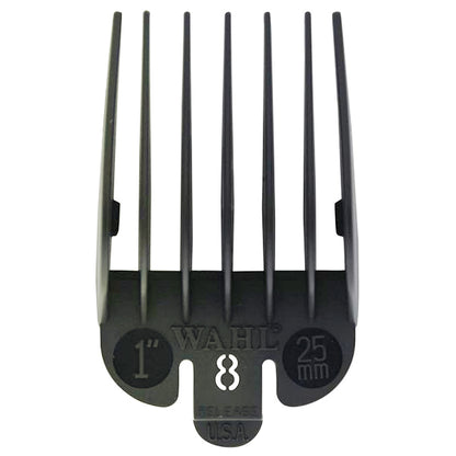 Easy, durable, and reliable, you’ll need the whole line. Package contains one Wahl Professional #8 Guide Comb Attachment. Black in color and provides a 1" (25.0mm) length.