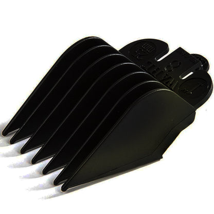 From Wahl Professional's commercial grade line of products, the #8 Guide Comb Attachment is intended for professional use only and is designed to deliver the sharp performance that experts demand. The #8 Guide Comb Attachment Comb Attachment provides a secure fit to most Wahl full size clippers to prevent any accidents or mishaps with slipping attachments. However, you can release them easily and change it out for a perfect fade.