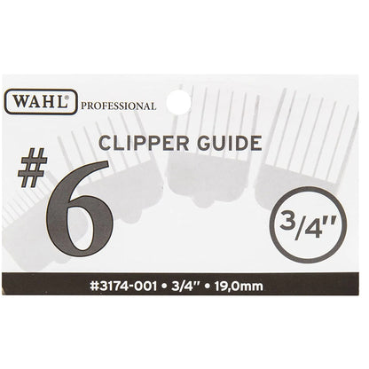 The #6 Cutting Guide comes in Black (3174-001) or Lavender (3174-1103) and measures at a cutting length of 3/4”. The Wahl Professional Cutting Guides fit all full-size Wahl Professional blades excluding the Competition Series and 5-in-1 Magic Blades.