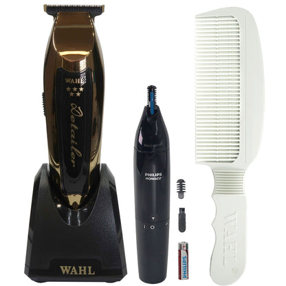 WAHL 5 STAR GOLD DETAILER CORDLESS LI TRIMMER #8171-700 + PHILIPS NORELCO ULTIMATE COMFORT NOSE TRIMMER 1000 + WAHL FLAT TOP COMB WHITE #3329-100