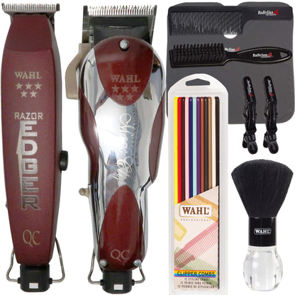 WAHL 5 STAR UNICORD COMBO CLIPPER / TRIMMER 8248 + WAHL ASSORTED COLORED STYLING COMBS 12PACK 3206-200 + WAHL PROFESSIONAL BARBER NECK DUSTER BRUSH + BABYLISS 4 BARBERS ESSENTIAL BARBER KIT BBARBKIT
