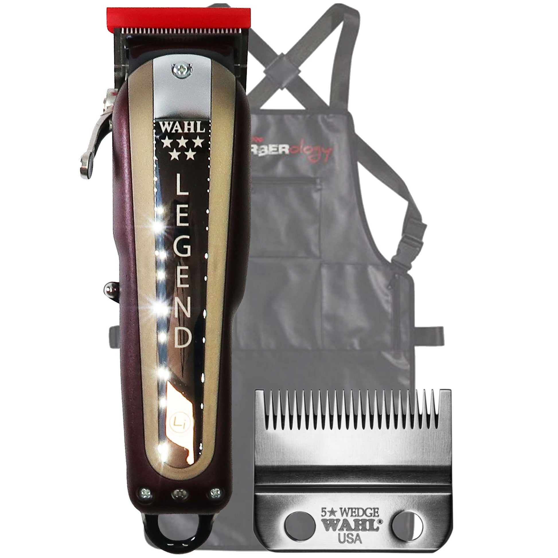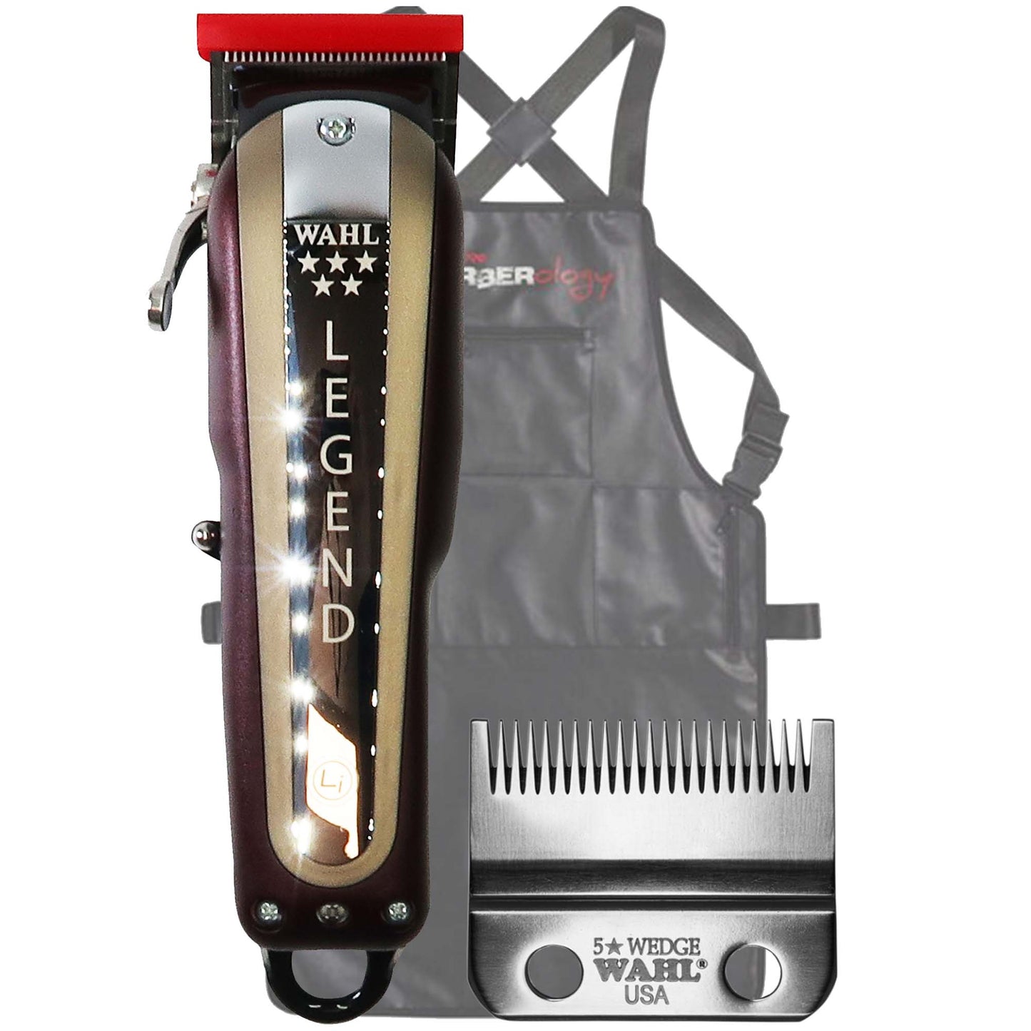 WAHL PROFESSIONAL 5 STAR LEGEND CORDLESS HAIR CLIPPER 8594 + BABYLISS PRO BARBEROLOGY INDUSTRIAL BARBER APRON + WAHL WEDGE WIDE RANGE FADE CLIPPER BLADE FOR 5-STAR LEGEND 2228