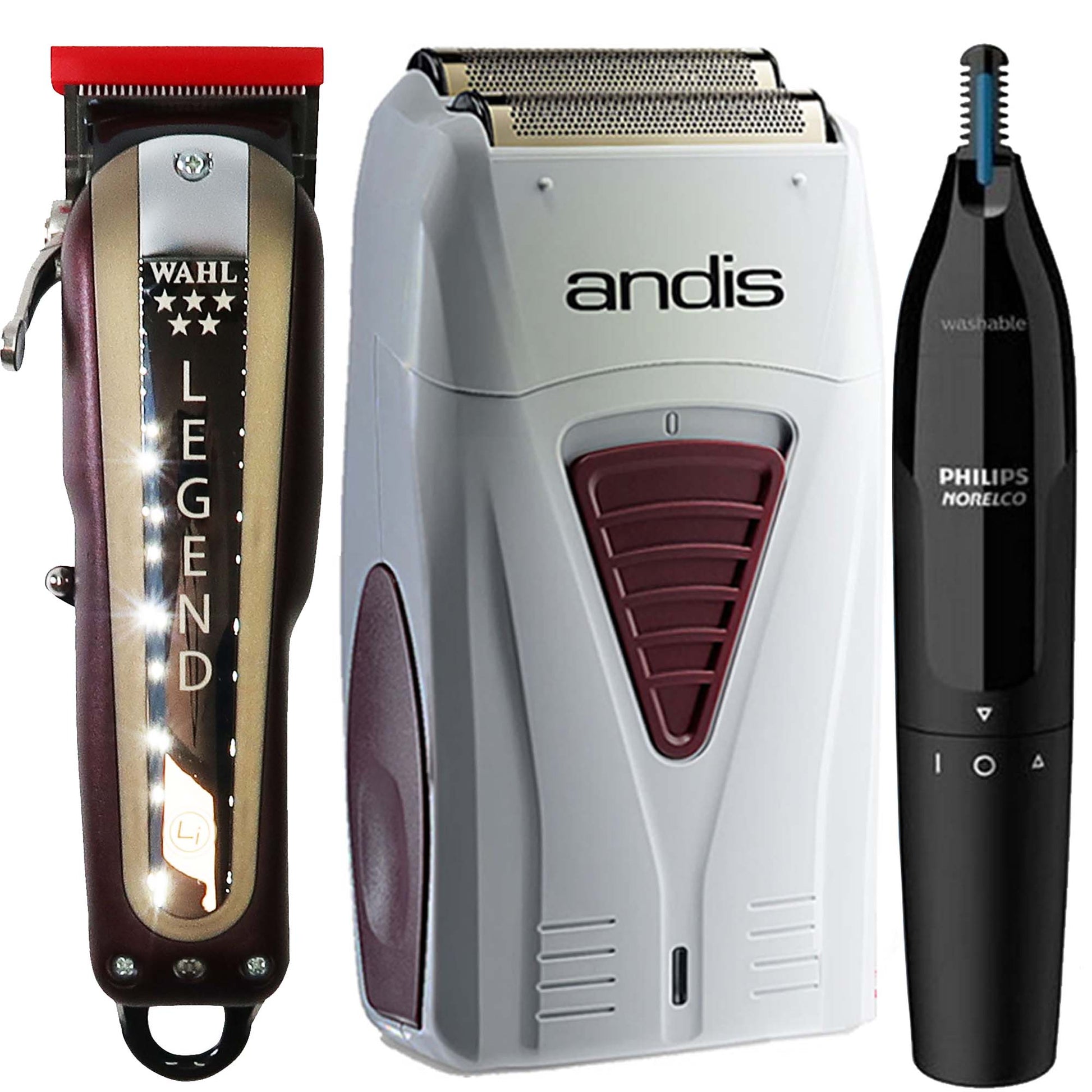 WAHL PROFESSIONAL 5 STAR LEGEND CORDLESS HAIR CLIPPER 8594 + ANDIS 17150 PRO FOIL LITHIUM TITANIUM FOIL SHAVER, CORD/CORDLESS + PHILIPS NORELCO ULTIMATE COMFORT NOSE TRIMMER NT1605/60 FOR NOSE, EAR AND EYEBROWN