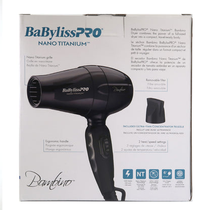 The ultra-lightweight design of this compact dryer provides 1000 watts of power, Nano Titanium technology. This is a compact hair dryer that is as powerful as a full-size hairdryer. It is designed with technology that quickly dries your hair and leaves it soft, shiny and smooth. The dryer has two speeds and heat settings that give you the choices you need when styling. This high-quality dryer is ultra-lightweight and is great for home or travel.