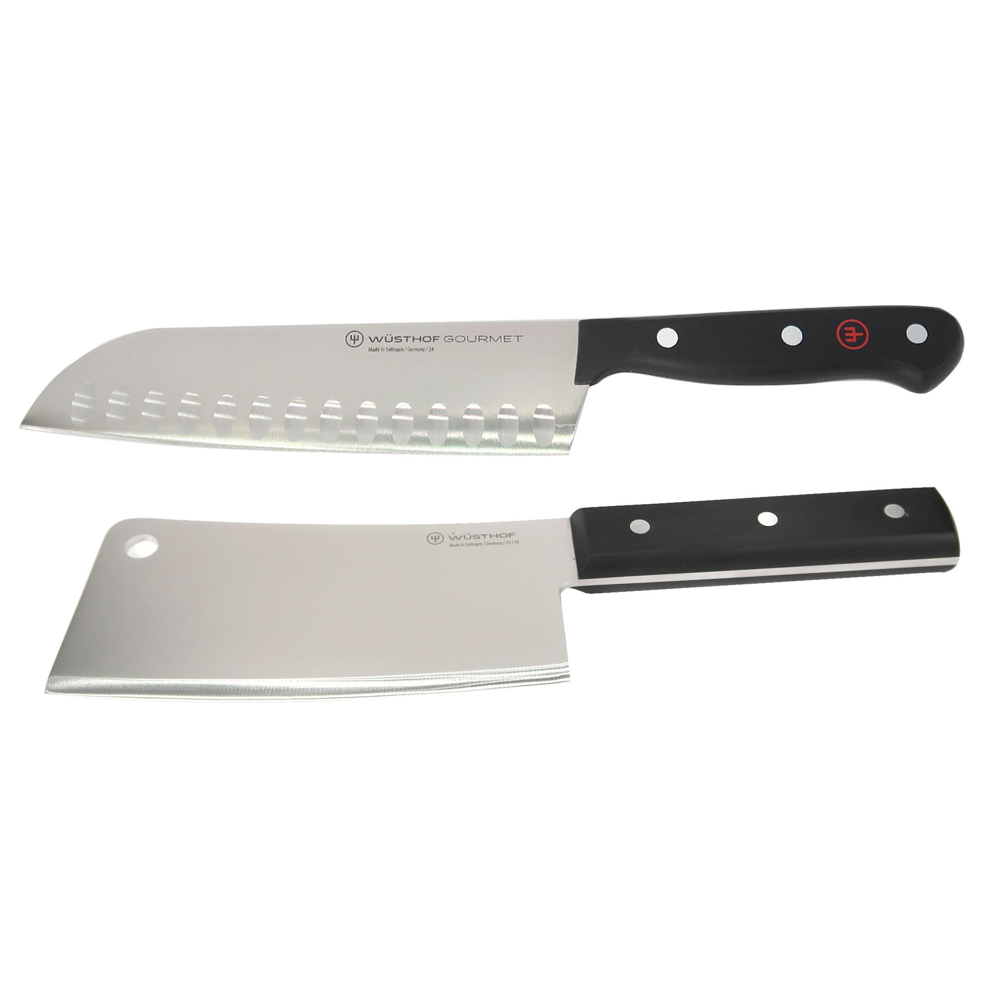 WÜSTHOF CLASSIC 6" CLEAVER KNIVE, BLACK + WUSTHOF GOURMET 7" HOLLOW EDGE SANTOKU KNIFE, BLACK