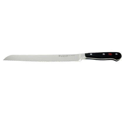 - WUSTHOF CLASSIC SERIES – 9" Double Serrated Bread Knife with full tang triple riveted synthetic polypropylene handles that resist fading, discoloration, heat and impact. The WÜSTHOF Classic Series has been our best-selling series for generations.