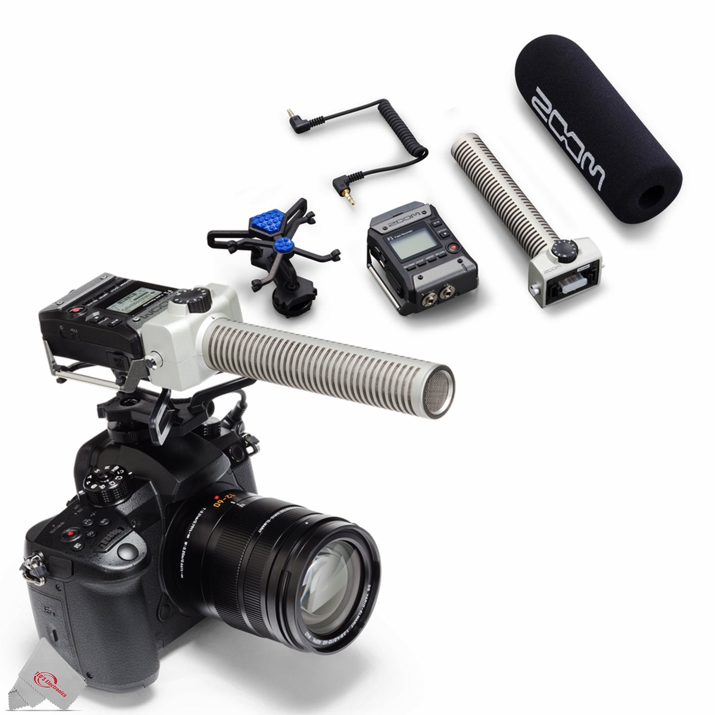 Includes Extras Place the supplied foam windscreen over the shotgun mic to reduce wind noise and protect the capsules from moisture and dirt. A 3.5mm stereo audio cable is included for simple connection from the F1-SP's output to your DSLR camera's input.