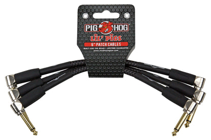- Pig Hog PHLIL6BK Lil' Pigs Right Angle to Right Angle 1/4" Black Woven Instrument Patch Cables, 6" (3 Pack)