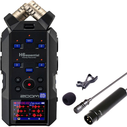 ZOOM H6ESSENTIAL 6-TRACK 32-BIT FLOAT PORTABLE AUDIO RECORDER + 2X VIDRO PROFESSIONAL WIRED XLR LAVALIER MICROPHONE