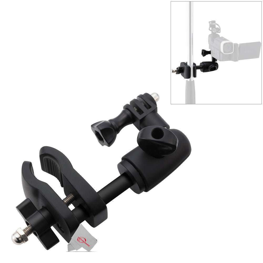 The Zoom MSM-1 Mic Stand Mount allows you to mount your Q4 Handy Video Recorder onto a microphone stand to capture unique and exciting angles of musicians in the rehearsal studio or on stage. The camera attaches via a 3-prong mounting interface, which is also compatible with GoPro HERO housings and frames, as well as other cameras that utilize the GoPro-style mount. Additionally, the mount can be used with a Zoom Q8 when paired with a 1/4"-20 to 3-prong adapter.
