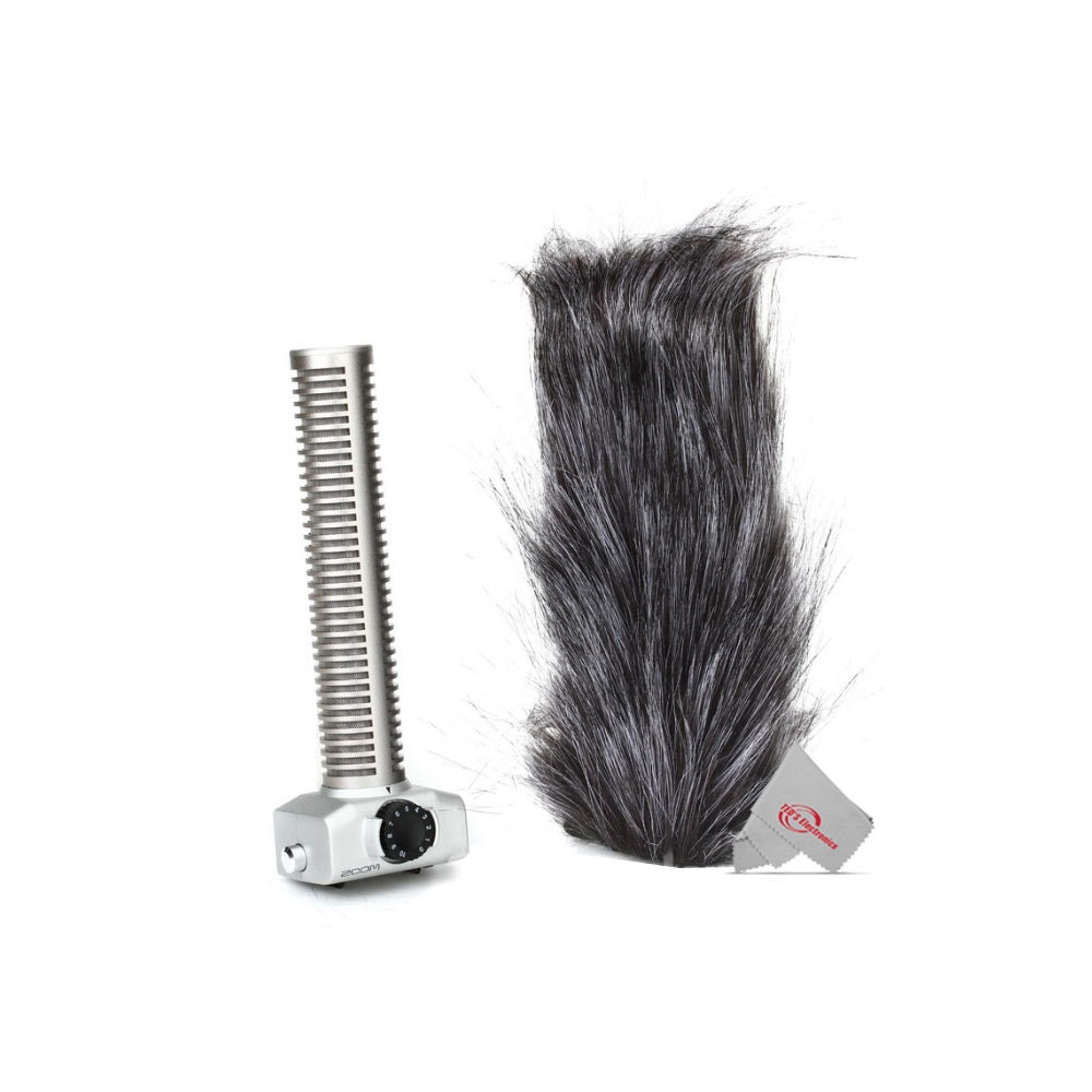 - Hairy windscreen for protection against wind noise and vocal plosives