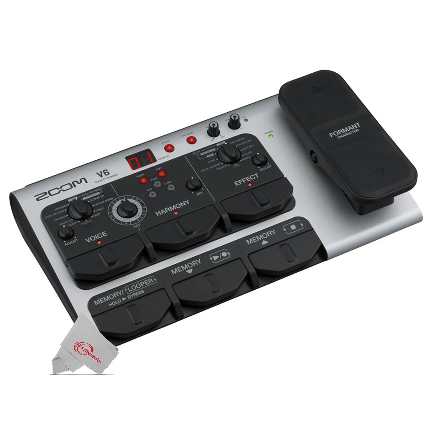 The Zoom V6-SP Multi-Effects Vocal Processor Pedal is designed specifically for bringing studio-quality sound to vocalists performing live. Packed with professional vocal effects and preloaded patches, harmony generator, built-in looper, formant-shift pedal, high-quality preamp, and USB audio interface, it can be used right out of the box to easily change the character of your vocals, on the fly.