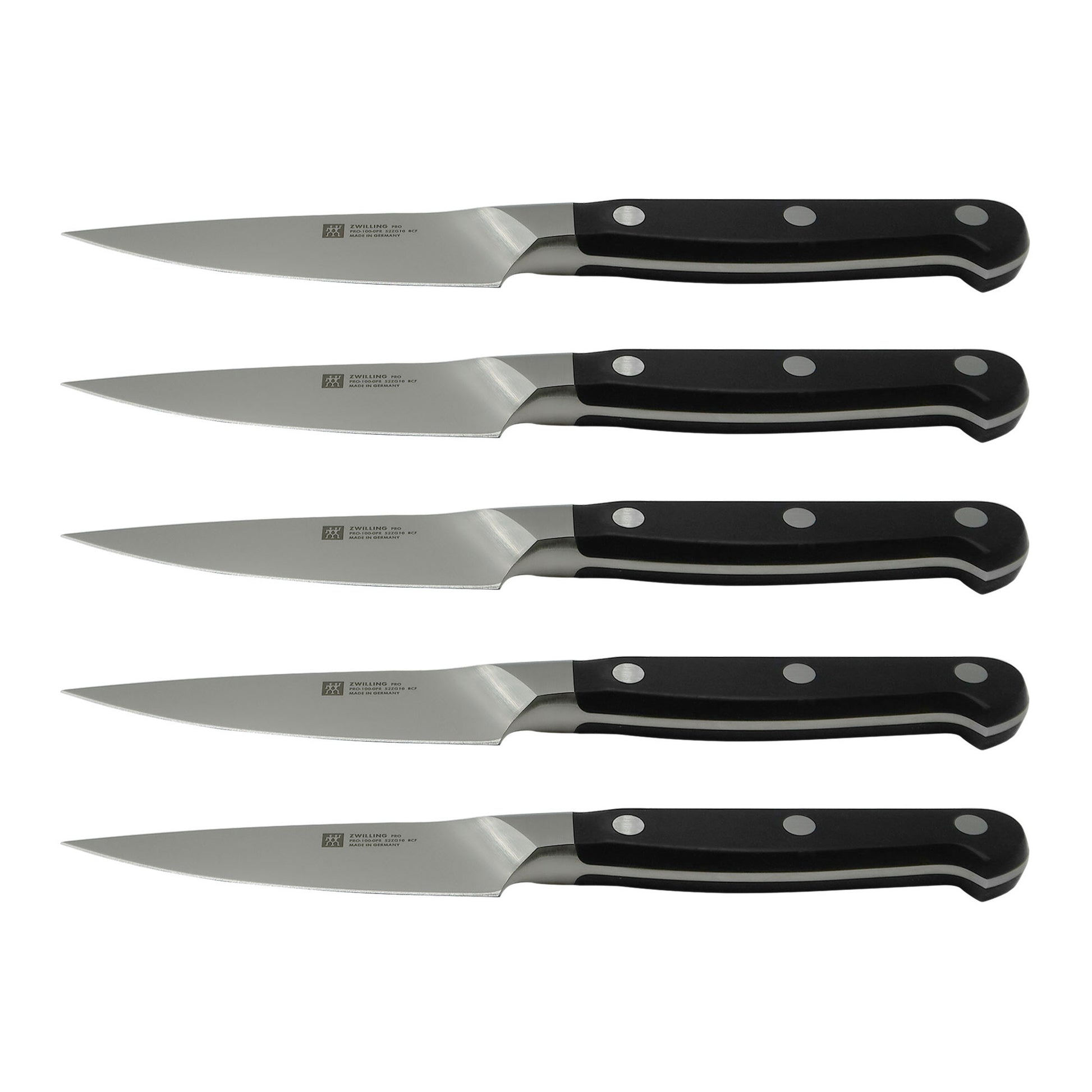 ZWILLING Pro is the most user-friendly knife available to market. The unique blade shape and ergonomic bolster are the result of 280 years of experience in knife making, and the rigorous study of how knives are used. A unique curved bolster supports the professional pinch grip, with thumb and index finger on the blade, for safe cutting and less fatigue. The full length of the blade can be used when cutting and can be sharpened from bolster to tip Designed in Italy by Matteo Thun and made in Germany by ZWILLING J.A. Henckels, the company that sets the standard for exceptional cutlery worldwide. The ZWILLING Pro Paring Knife is a small knife with a strong blade and center tip. It is ideal for cleaning, peeling and cutting small fruits and vegetables.